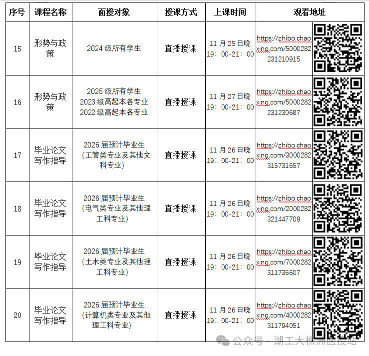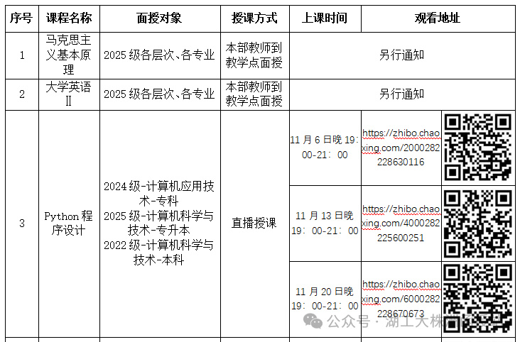 2、《形势与政策》直播面授教学按层次、专业分两个教学班分别授课,学生根据自己的学习层次、专业,按对应的上课时间进行观看学习。