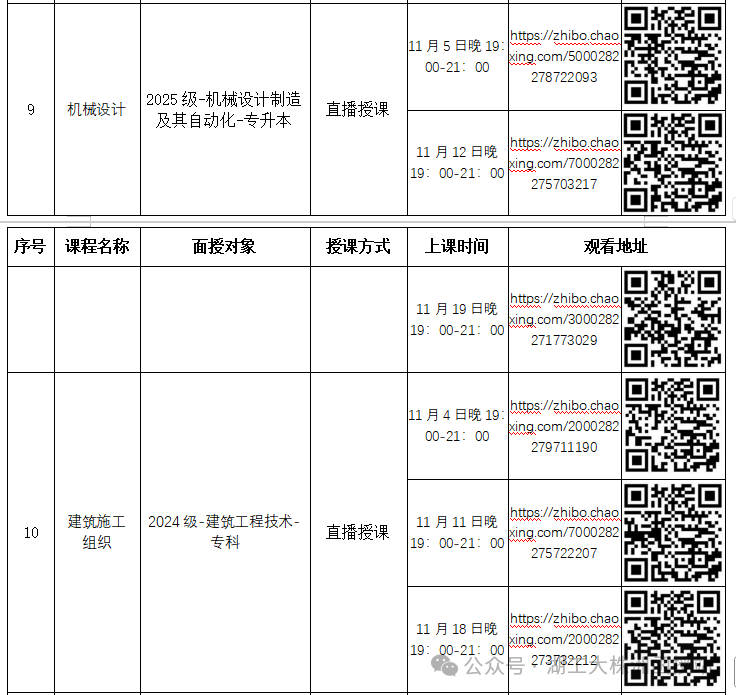 1、采用直播授课教学的课程,学生按上课时间登录超星学习平台,点击直播链接或扫描二维码即可参与学习。