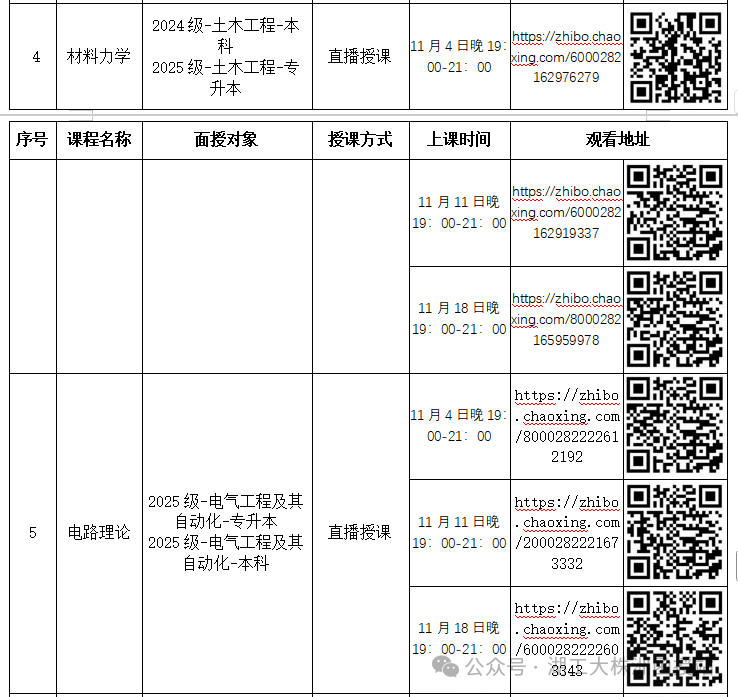 1、采用直播授课教学的课程,学生按上课时间登录超星学习平台,点击直播链接或扫描二维码即可参与学习。