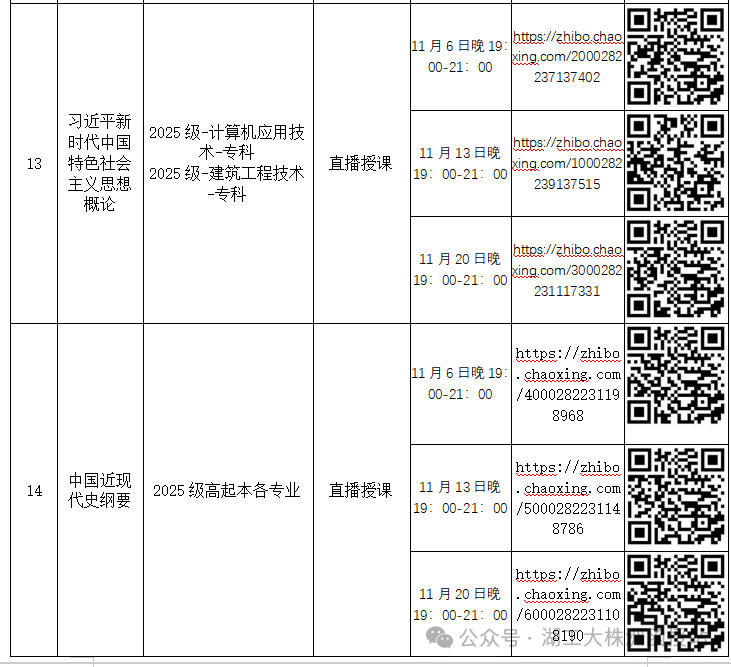 2、《形势与政策》直播面授教学按层次、专业分两个教学班分别授课,学生根据自己的学习层次、专业,按对应的上课时间进行观看学习。